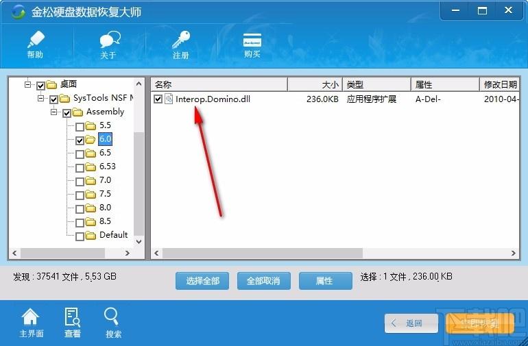 可查看可恢复文件的大小、类型、属性、修改日期等信息